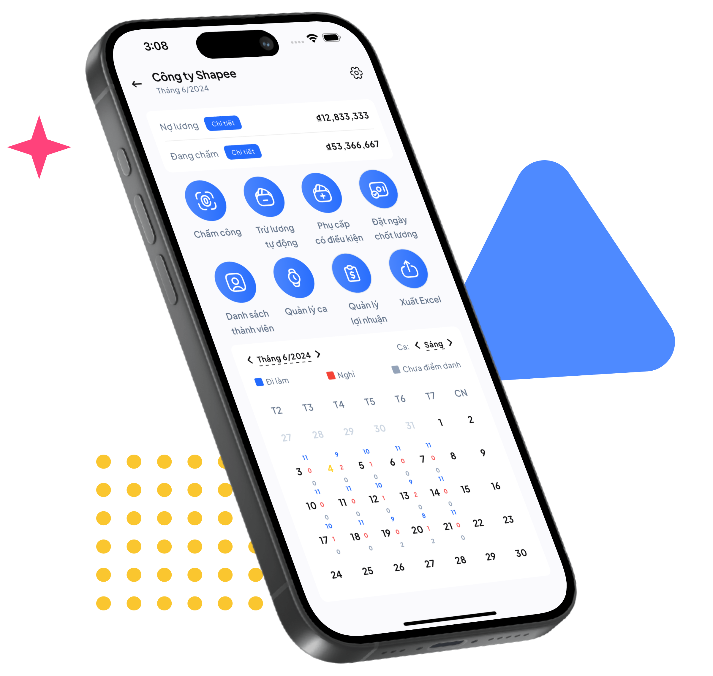 Loại bỏ tính toán thủ công! Ứng dụng tự động theo dõi giờ làm việc, đi muộn, về sớm, đảm bảo xử lý bảng lương rõ ràng, chính xác.